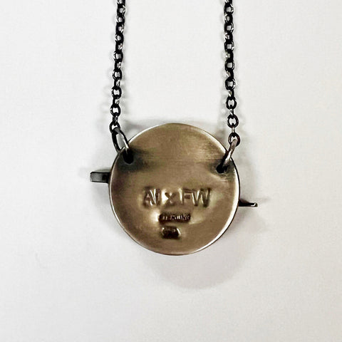 Handcrafted by local jewelry artist Aileen Lampman, these one-of-a-kind pendants are composed of sterling silver and original concrete fragments removed from Fallingwater during the World Heritage Preserved project. To create the pendant, the fragments are skillfully placed in the sterling silver bezel and secured with micro mosaic grout. Each pendant is placed on streling silver chain.