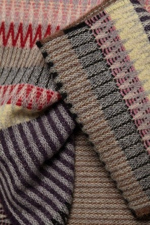 From the UK-based British designers Wallace & Sewell + Florence Hutchings, the Edera scarf is bold, with alternating stripes of geometric zigzags and fine pinstripes, creating an overall dynamic, textured look.