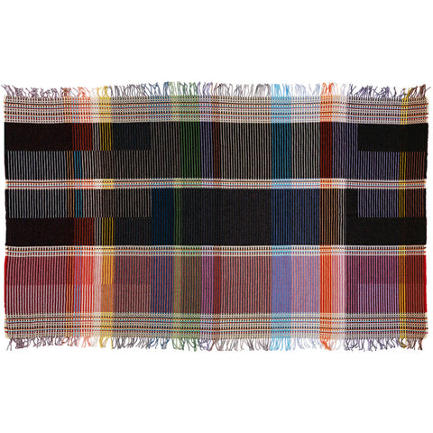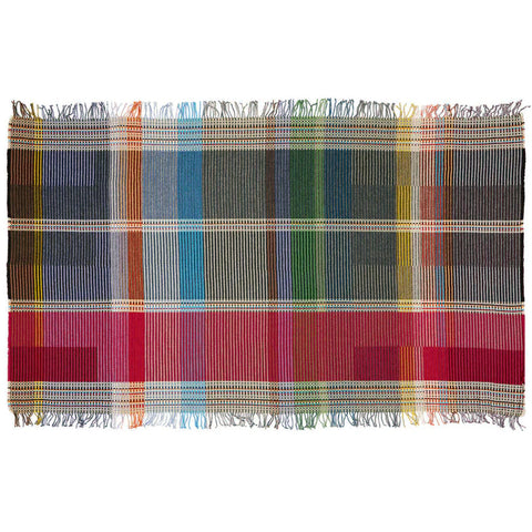 From the UK-based British designers Harriet Wallace-Jones and Emma Sewell, these Pinstripe throws combine bold colored blocks with fine, detailed vertical stripes. This double-sided design also has a contrasting pixelated border and makes a stunning addition to a room.